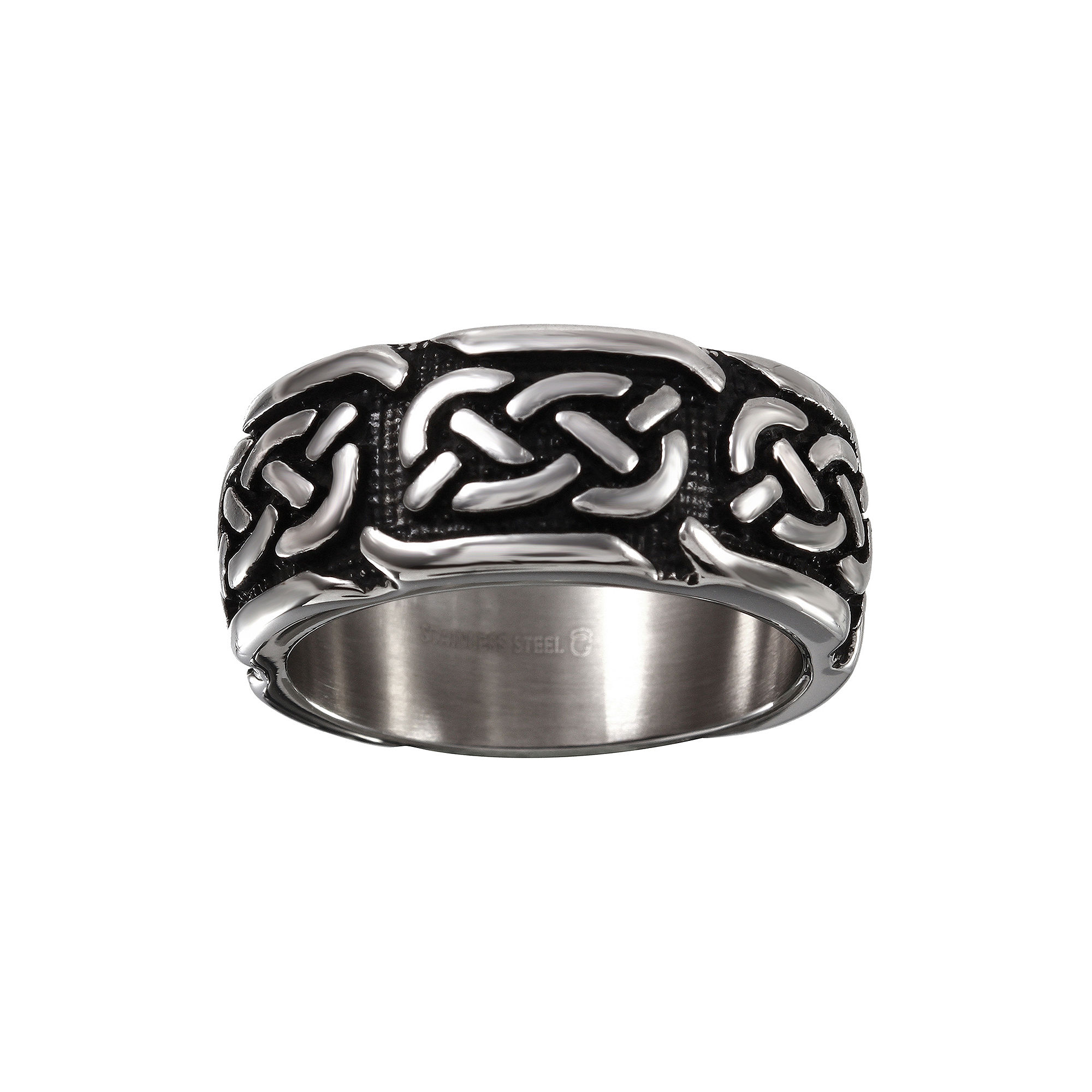 Stainless Steel Polished Gold-Tone Celtic Inlay Eternity Ring, 8 mm: Color: silver-tone, goldMetal: stainless steel, gold overlayFinish: high polishMetal weight: 6 gramsBand dimensions: 8mm x 2.25mmComfort-fit band: Comfort-fit bands are contoured on the inner surface for a more comfortable fitEvery piece of Walmart jewelry passes rigorous inspection at our Quality Assurance labs