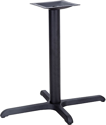 Features Restaurant Table Base X-Base Configuration Cast Iron Construction Easy 2-Piece Assembly with Single Bolt Top Plate Pre-Welded to Column Black Powder Coated Finish Available in Table Height or Bar Height Designed for Commercial Use Designed for 24'' x 42'' to 30'' x 48'' Rectangular Table TopsColor: BlackMaterial: Cast Iron, IronOverall Dimension: 22''W x 30''D x 30''H